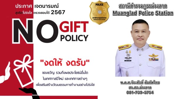 ประกาศสถานีตำรวจภูธรม่วงลาดเรื่อง นโยบายต่อต้านการรับสินบน (Anti...
